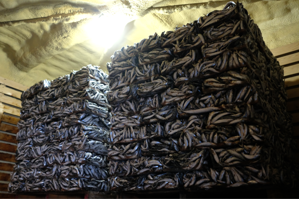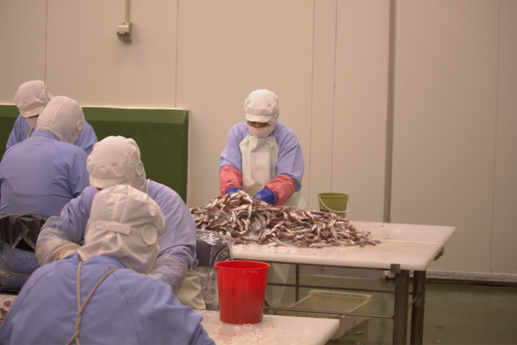 餌の原料の倉庫。大量のイワシが凍っていて圧巻。